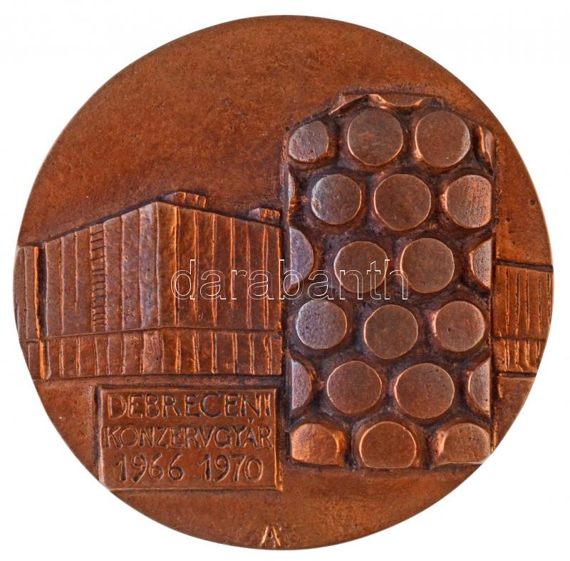 Asszonyi Tamás (1942-) 1970. "Debreceni Konzervgyár" egyoldalas, öntött Br emlékplakett (95-96mm) T:2
