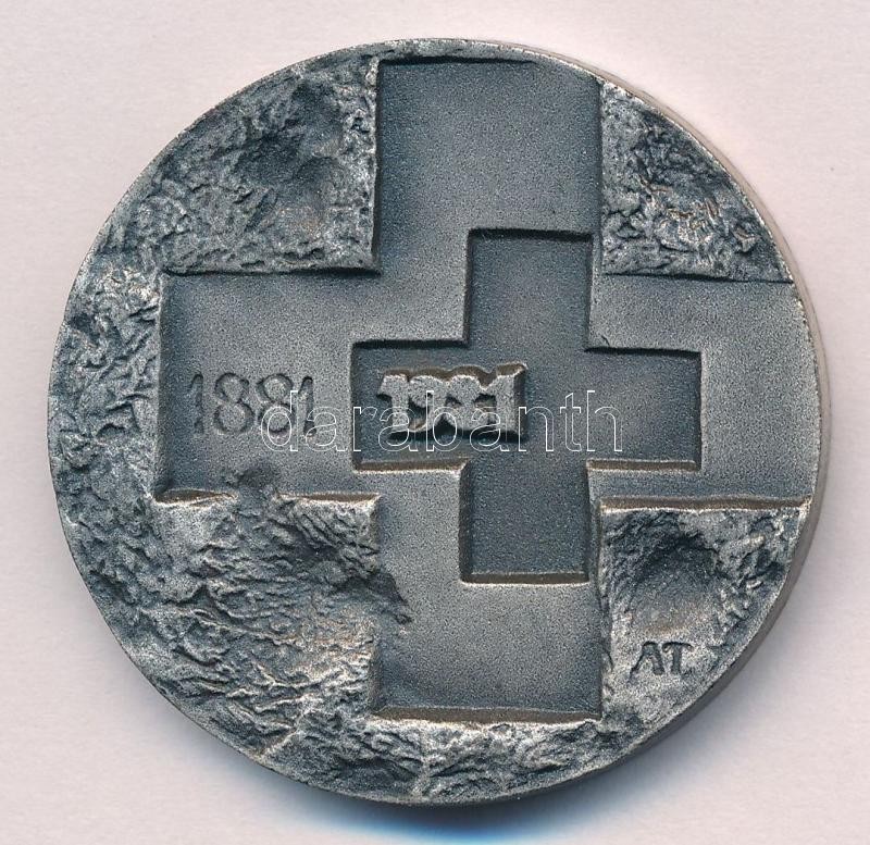 Asszonyi Tamás (1942-) 1981. "1881-1981 / 100 éves a Magyar Vöröskereszt" ezüstözött fém emlékplakett (40mm) T:1-