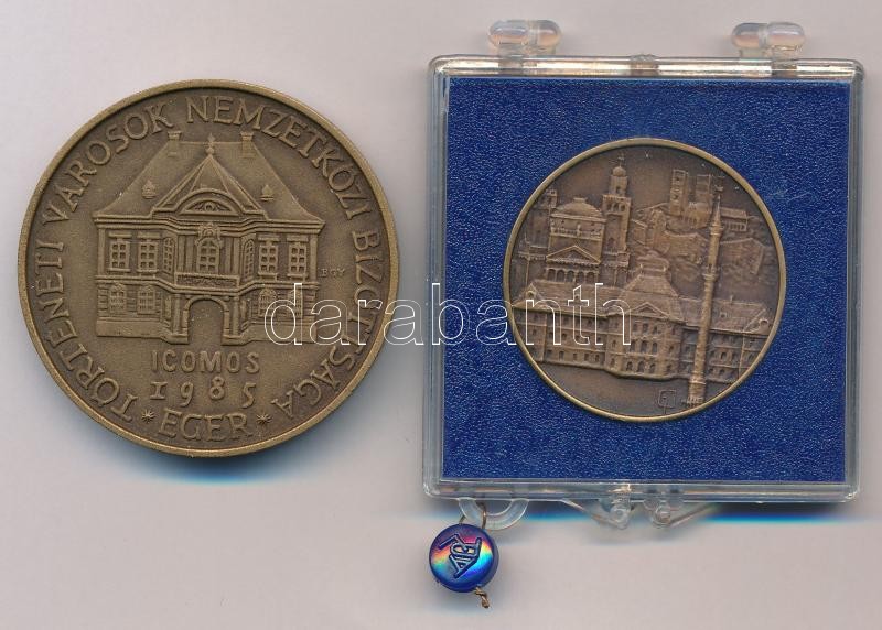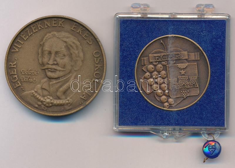 Bognár György (1944-) 1985. "Történeti Városok Nemzetközi Bizottsága - Eger / 'Eger, vitézeknek ékes oskolája' - Balassi Bálint" Br emlékérem (42,5mm) + Garamkeszi János (1936-) DN "Eger" Br emlékérem plombált "ÁPV" plasztiktokban (30mm) T:1-,1