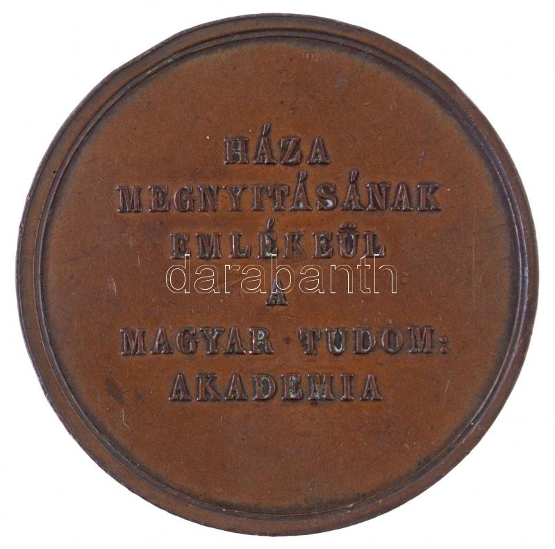 Carl Radnitzky (1818-1901) 1865. "A Magyar Tudományos Akadémia megnyitásának 40. évfordulójára" Br emlékérem. "XI. DEC: MDCCCLXV / HÁZA MEGNYITÁSÁNAK EMLÉKEÜL A MAGYAR TUDOM: AKADÉMIA" (52,60g/51mm) T:2 patina, kis ph. / Hungary 1865. "40th anniversary of the opening of the Hungarian Academy of Sciences" Br medallion. Sign.: Carl Radnitzky (52,60g/51mm) C:XF patina, small edge error