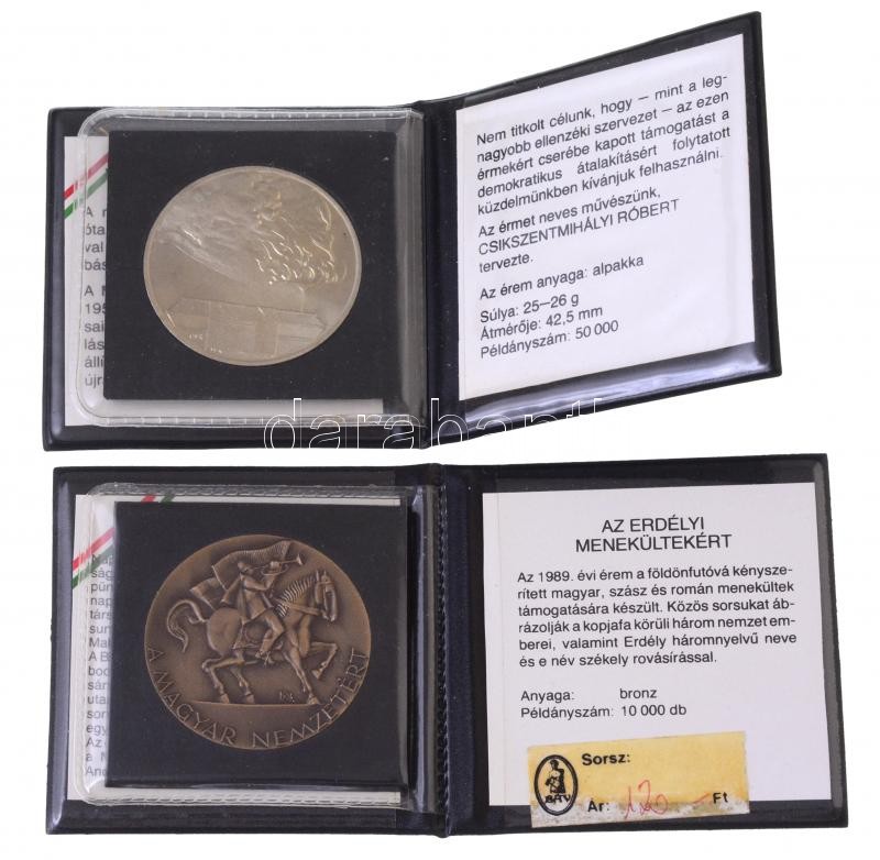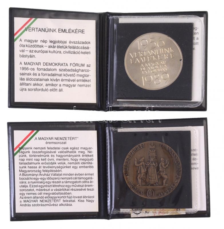 Description: Csíkszentmihályi Róbert (1940-) 1989. "1956 Vértanúk Emlékére - A Magyar Demokrata Fórum 1989" alpakka emlékérem eredeti műbőr tokban, tanúsítvánnyal (42,5mm) + Kiss Nagy András (1930-) 1989. "Magyar Nemzetért / Erdély" Br emlékérem, eredeti műbőr tokban, tanúsítvánnyal (42mm) T:1