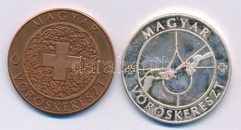 DN "Véradásért / Magyar Vöröskereszt" (2xklf) 25 és 100 véradásért, Br és fém emlékérmek (31mm, 32mm) T:1- (PP) patina