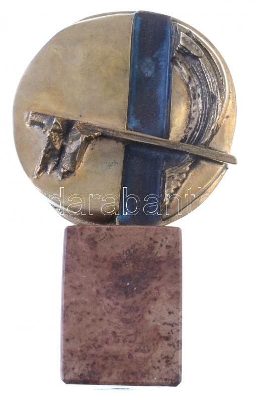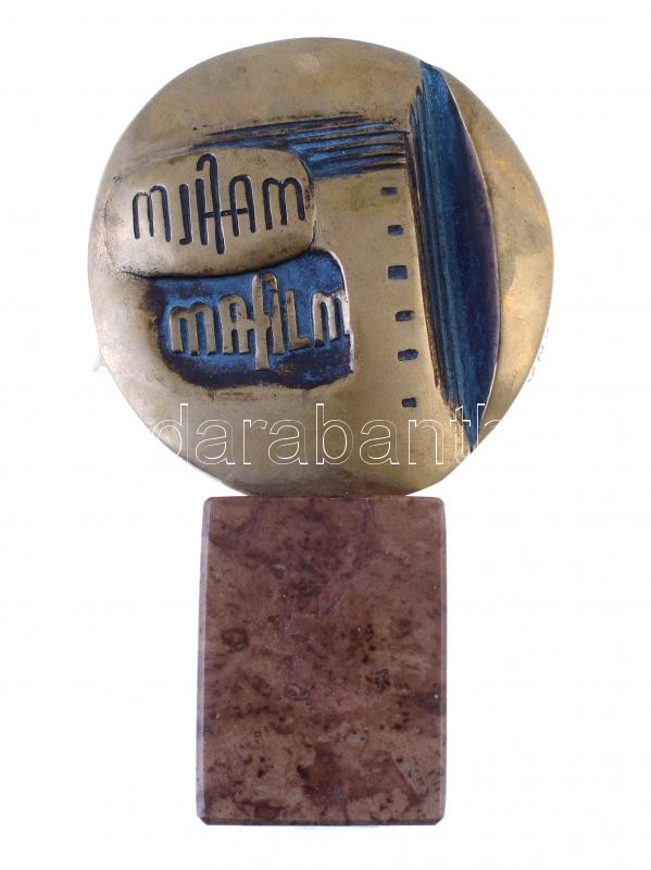 Kiss Nagy András (1930-1997) ~1980-1990. "MAFILM (Magyar Nemzeti Filmalap Zrt.)" törzsgárda(?) fém plakett márványtalpra rögzÃtve (~88mm) + adományozói okirat T:2 patina, rögzÃtés kilazult