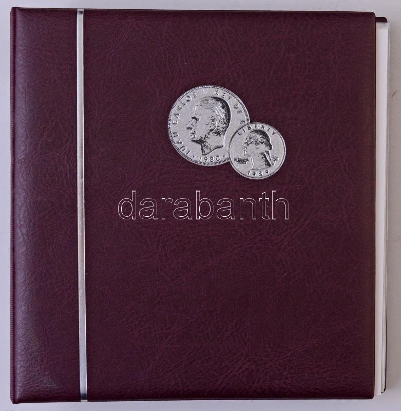Használt műbőr éremberakó, 11db berakólappal 231 férőhellyel, különböz...