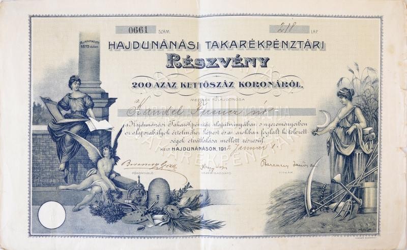 https://www.darabanth.com/en/395-Online-auction/395.0/Numismatics/Shares-and-Tickets~2000005/Hajdunanas-1912-Hajdunanasi-Takarekpenztar-reszvenye-200K-rol-szarazpecsettel-1db-sz~II2397798