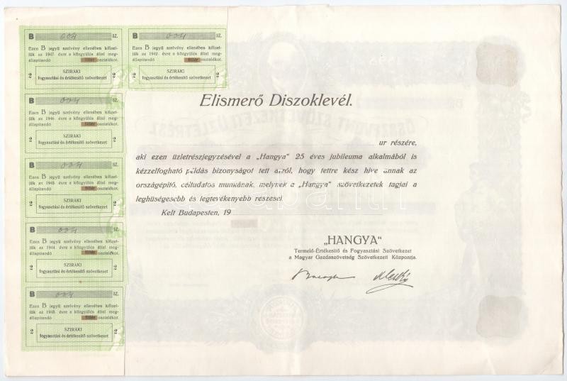 Sirok 1927. "Sirok és Vidéke Fogyasztási és Értékesítő Szövetkezet' Összevont Szövetkezeti Üzletrész" névre szóló szövetkezeti üzletrész 2P-ről szelvényekkel és felülbélyegzésekkel T:II