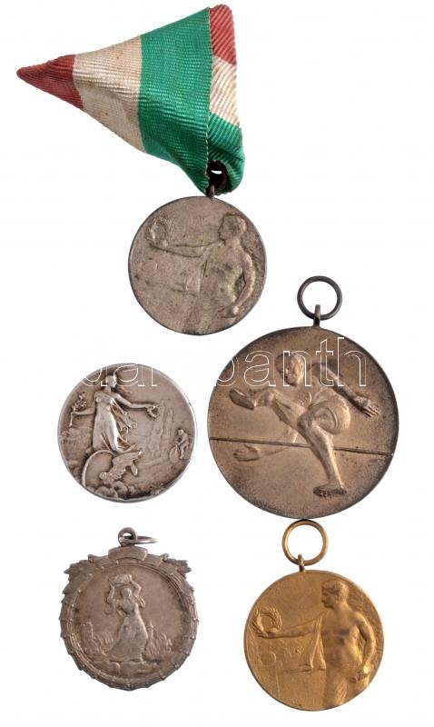 1938-1943. 5db klf Br, ezüstözött Br díjérem, egyik szalaggal T:2