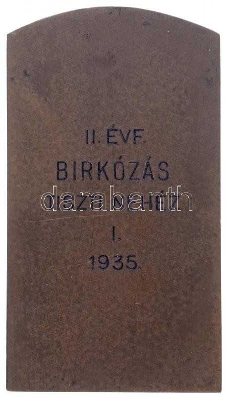 Description: Kovács Panni 1935. "Magyar Királyi Toldi Miklós Honvéd Sporttanár és Vívómesterképző Intézet / II. évf. Tőr I. 1935." Br sport díjplakett (79x44mm) T:2 / Hungary 1935. "Magyar Királyi Toldi Miklós Honvéd Sporttanár és Vívómesterképző Intézet / II. évf. Tőr I. 1935." Br sports award plaque. Sign.: Panni Kovács (79x44mm) C:XF