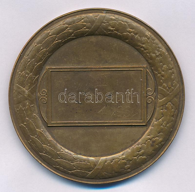 Description: Ligeti Miklós (1871-1944) 1931. "Pesti Magyar Kereskedelmi Bank T.S.E. - 1911-1931" Br díjérem, hátoldalon gravírozva "1931.V. 4x40 vegyes II." (50mm) T:1-,2