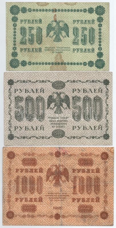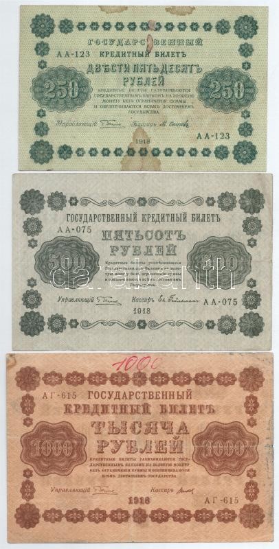 Szocialista Szövetségi Szovjet Köztársaság 1918. 1R-1000R (8xklf) T:II... https://www.darabanth.com/en/395-Online-auction/395.0/Numismatics/Worldwide-banknotes~2000013/Szocialista-Szovetsegi-Szovjet-Koztarsasag-1918-1R-1000R-8xklf-TIII-III-kis-szakadasok-f~II2402361