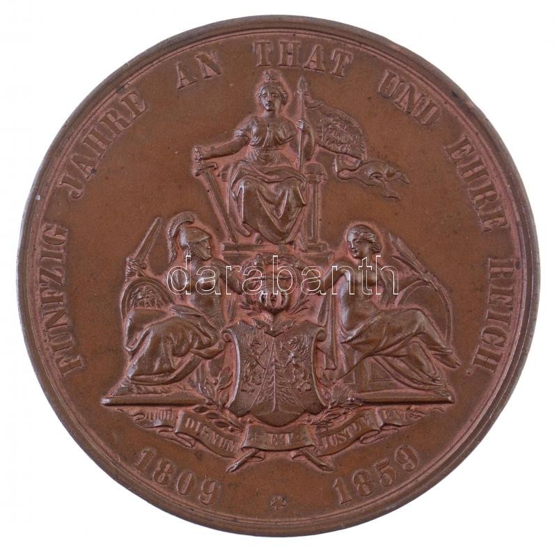 Ausztria 1859. "Johann Kempen Freiherrr von Fichtenstamm / 50 éves szolgálatért" Br emlékérem. Szign.: Heinrich Jauner (204,44g/80,5mm) T:2,2- ph. / Austria 1859. "Johann Kempen Freiherrr von Fichtenstamm / For 50 Years of Service" Br commemorative medallion. "JOHANN KEMPEN FREIHERR VON FICHTENSTAMM / FÜNFZIG JAHRE AN THAT UND EHRE REICH 1809 1859". Sign.: Heinrich Jauner (204,44g/80,5mm) C:XF,VF edge error