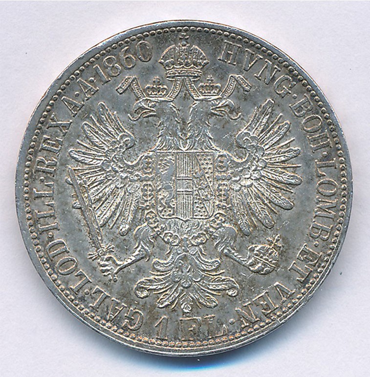 https://www.darabanth.com/en/395-Online-auction/395.0/Numismatics/Worldwide-silver-and-metal-coins~2000014/Ausztria-1860A-1Fl-Ag-Ferenc-Jozsef-T2-kis-ph-patina-Austria-1860A-1-Florin-Ag-Franz-Joseph~II2400015