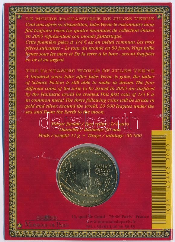 Franciaország 2005. 1/4E Cu-Al-Ni "Jules Verne" díszcsomagol... https://www.darabanth.com/en/395-Online-auction/395.0/Numismatics/Worldwide-silver-and-metal-coins~2000014/Franciaorszag-2005-14E-Cu-Al-Ni-Jules-Verne-diszcsomagolasban-TBU-France-2005-14-Euro-Cu-A~II2397564