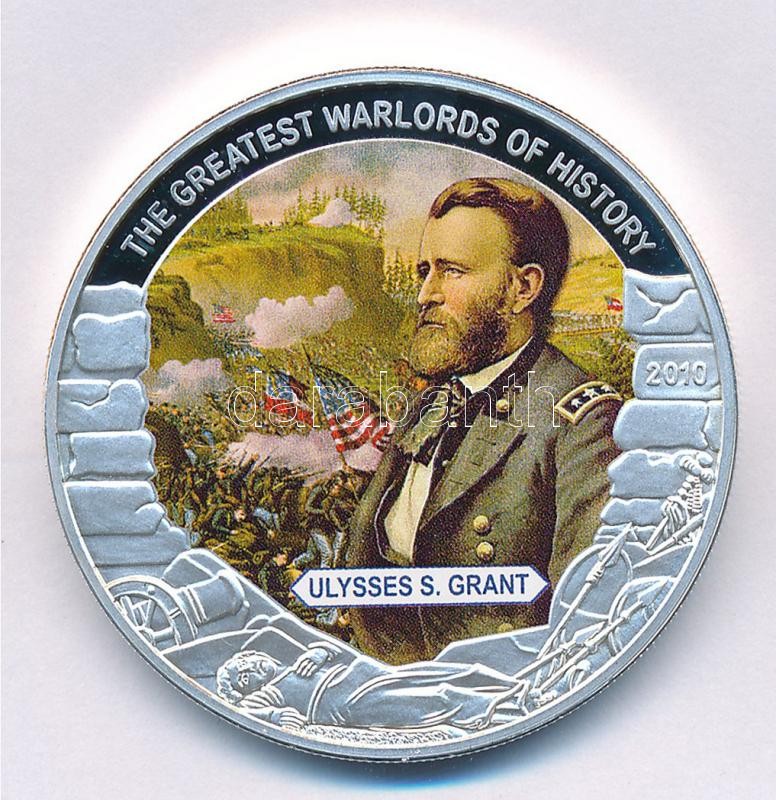 Description: Libéria 2010. 5$ ezüstözött Cu "A történelem legnagyobb hadurai - Ulysses S. Grant" részben multicolor festéssel, tanúsítvánnyal T:PP Liberia 2010. 5 Dollars silver plated Cu "The Greatest Warlords of History - Ulysses S. Grant" with partial multicolor picture, with certificate C:PP