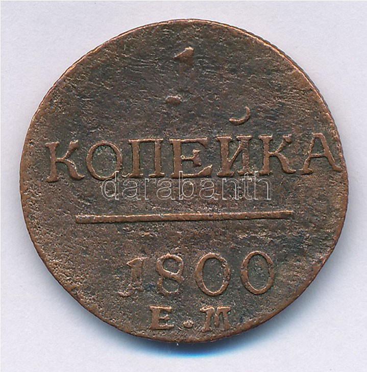 https://www.darabanth.com/en/395-Online-auction/395.0/Numismatics/Worldwide-silver-and-metal-coins~2000014/Orosz-Birodalom-1800EM-1k-Cu-T2-3-Russian-Empire-1800EM-1-Kopeck-Cu-CVF-F-Krause-C23941~II2397422