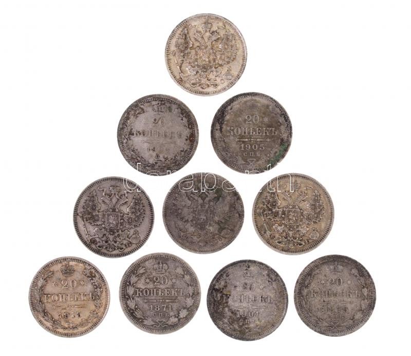 Orosz Birodalom 1870-1915. 20k Ag (10db, 9xklf) T:2-3 patina