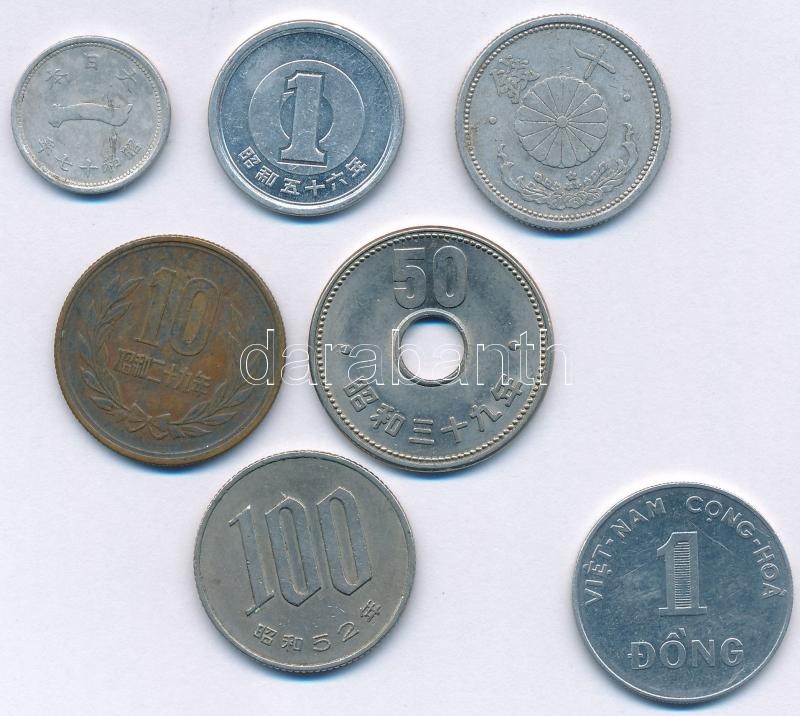https://www.darabanth.com/en/395-Online-auction/395.0/Numismatics/Worldwide-silver-and-metal-coins~2000014/Vegyes-Japan-1942-1996-10s-100Y-6xklf-plus-Del-Vietnam-1971-1D-Al-plus-Hongkong-1967-1997-5c-~II2402686