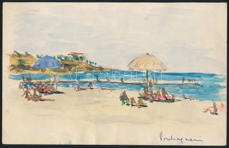 Jelzés nélkül, 2 db görögországi helyszínt megörökítő vízfestmény: Hydra szigete és Vouliagmeni. Akvarell, papír. 14,5x23 és 23x14,5 cm