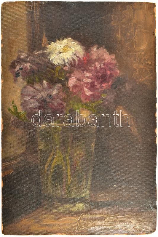 Jelzés nélkül: Csendélet. Olaj, karton. Sérült. 32,5x21,5 cm
