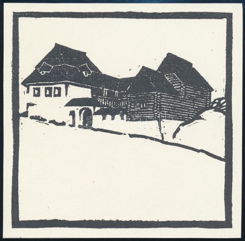 Kós Károly (1883-1977): Román nemesi kúria, offszet, papír, jelzés nélkül, 12x12 cm