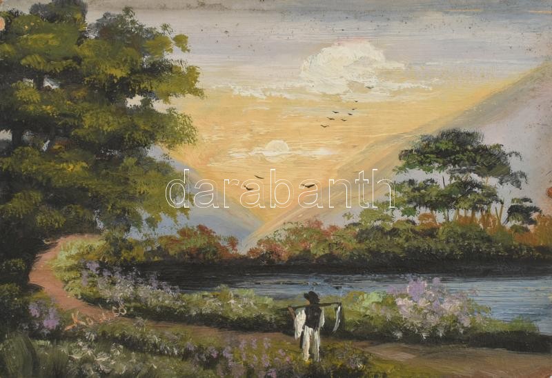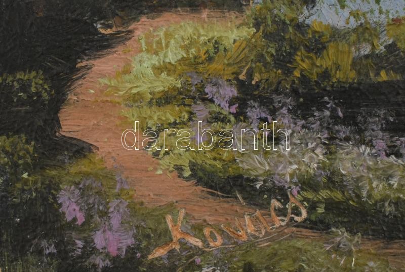 Kovács jelzéssel: Hazafelé. Olaj, karton. Bal felső sarkában kissé sérült. 16,5x23 cm