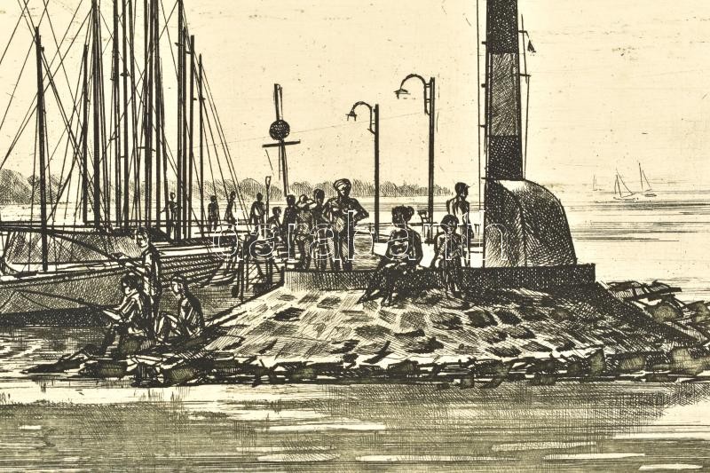 Csurgói Máté Lajos (1931-2001): Siófoki móló. Rézkarc, papír, jelzett,...