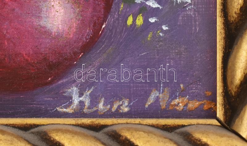Kun Mária (1944-): Csendélet virágokkal. Olaj, farost, jelzett. Dekora...