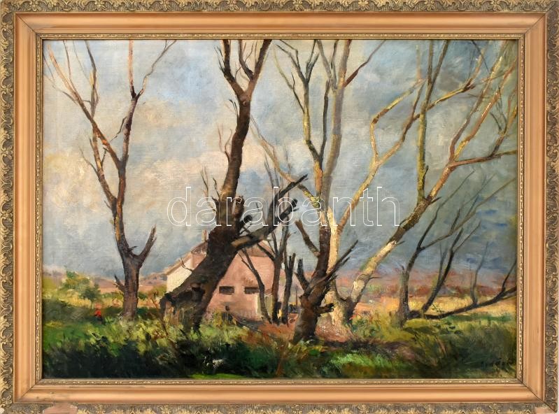 Ördögh László (1923-2007): Táj. Olaj, vászon. Jelzett. 60x80 cm, sérült fa keretben