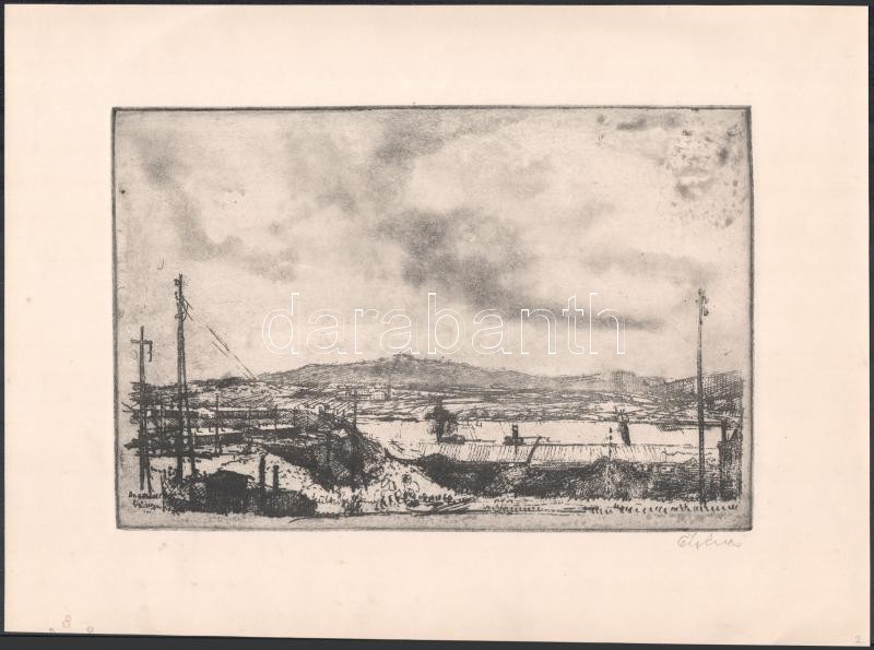 Ősz Dénes (1915-1980): ... bánya. Rézkarc, papír, jelzett. Lap szélén apró foltokkal. 19,5x29,5 cm