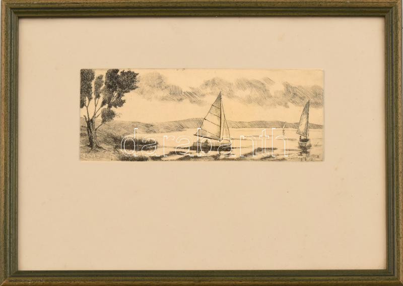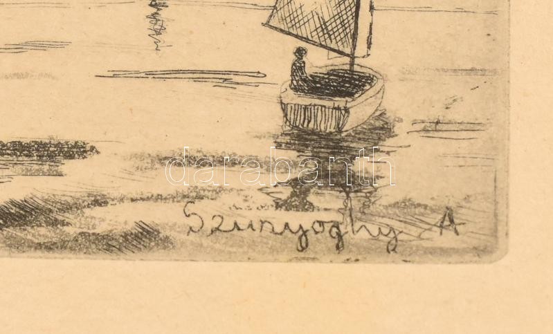 Szunyoghy András (1946-): Balatoni táj. Rézkarc, papír, jelzett a karc...