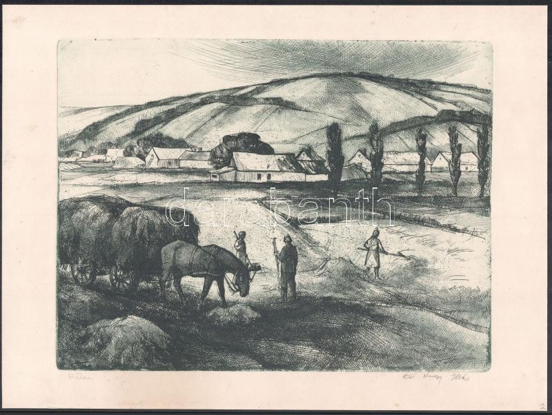 Zsoldos Nagy Illés (?-?): Réten. Rézkarc, papír, jelzett, 22,5×29,5 cm