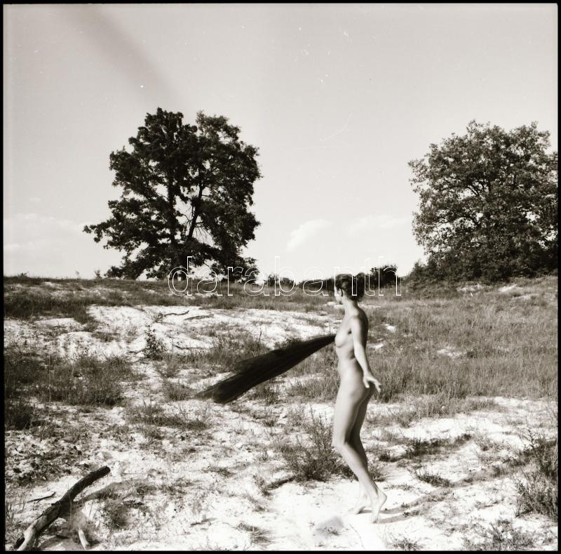 Description: Kalandos és izgalmas életek egy-egy pillanata, több fotómodell közreműködésével, különböző időpontokban és eltérő helyszíneken készült, aktfotós tanulmányok és vázlatok, Menesdorfer Lajos (1941-2005) budapesti fotóművész hagyatékából, 11 db vintage NEGATÍV, 6x6 cm