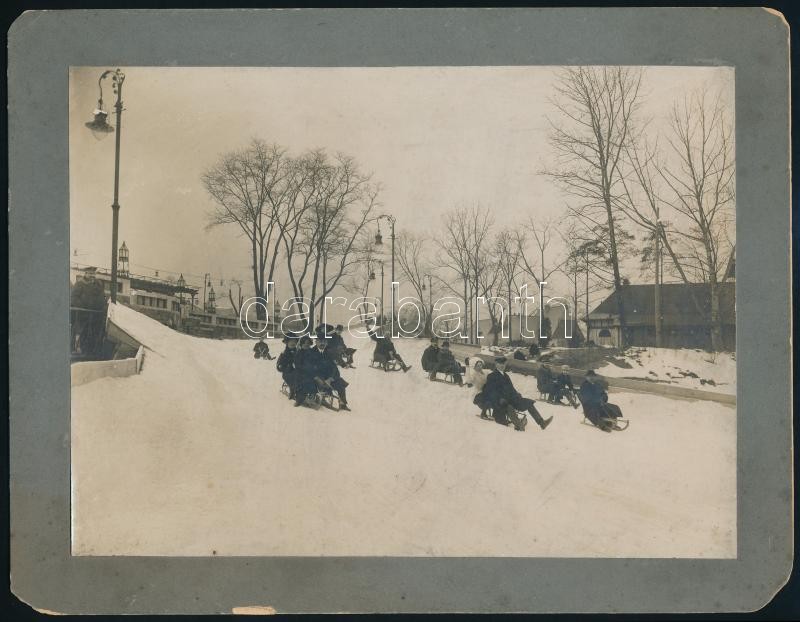 cca 1910 Szánkózók, Müllner János (1870-1925) budapesti fényképész hid...