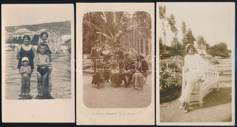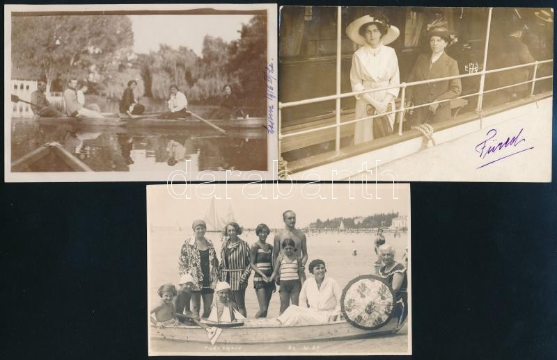 cca 1914-1930 Családi nyaralások, fürdőzők, 6 db fotólap, 9×14 cm