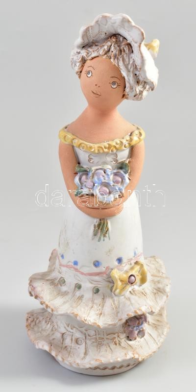 Győrbíró Enikő (1932-1999): Koszorúslány. Apró lepattanásokkal. Festett kerámia, jelzett, apró lepattanásokkal, m:26 cm