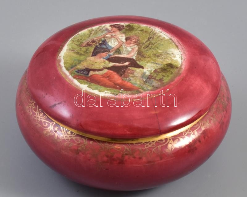 Alt Wien fajansz bonbonniere, kézzel festett jelenettel. Jelzett, hajs...