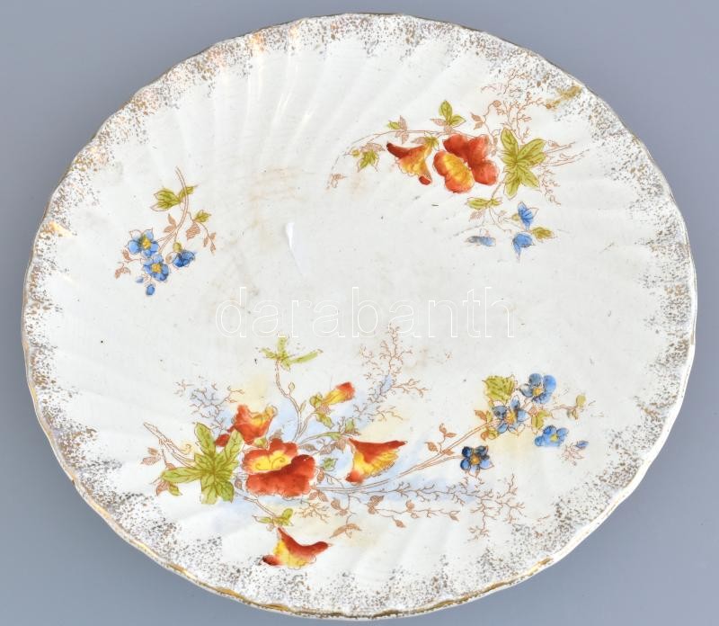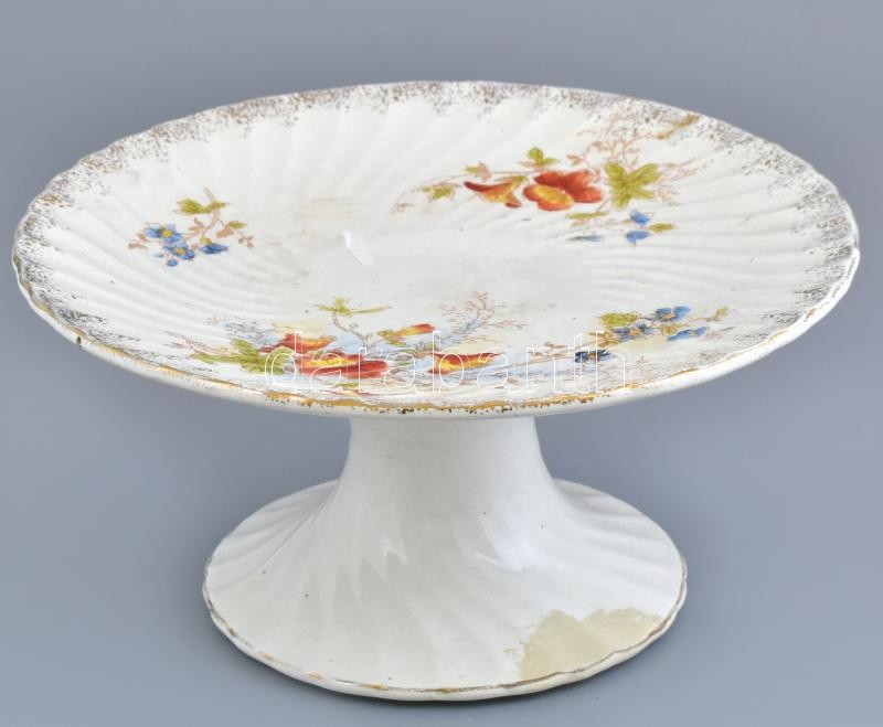 Bona antik fajansz sütemény kínáló tál. Máz alatti festéssel, jelzett,...