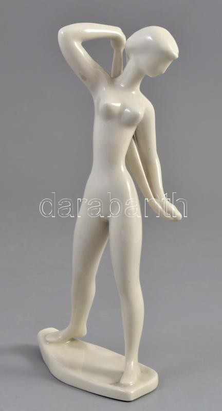 Drasche törölköző női akt, fehér mázas porcelán figura, jelzett, kis m...