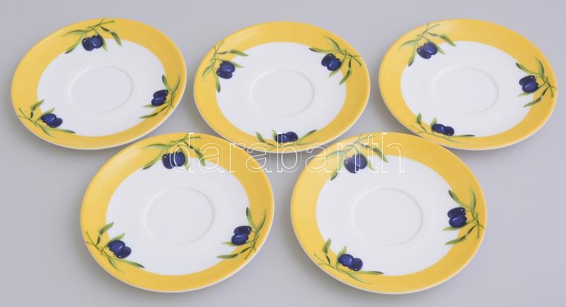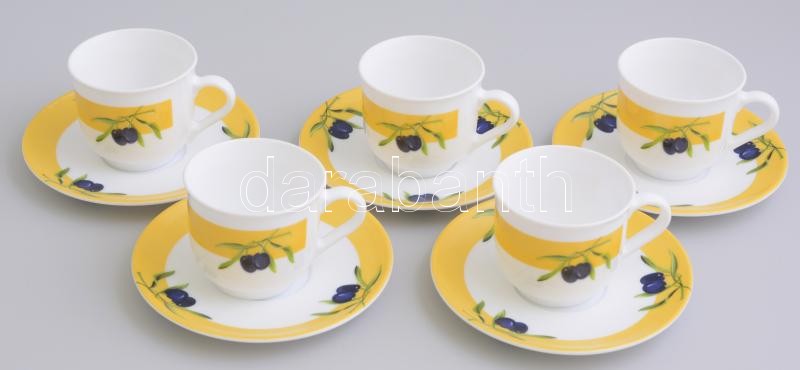 Francia Arc szilvamintás csészék aljakkal, matricás, jelzett, hibátlan, m: 6,5 cm, d: 14 cm
