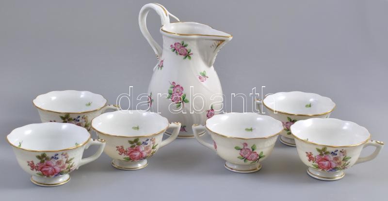 Herendi régi virág mintás porcelán mokkás csésze 6 db + kiöntő. Kézze...