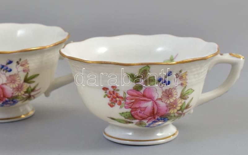 Herendi régi virág mintás porcelán mokkás csésze 6 db + kiöntő. Kézzel festett, jelzett, kopásokkal.