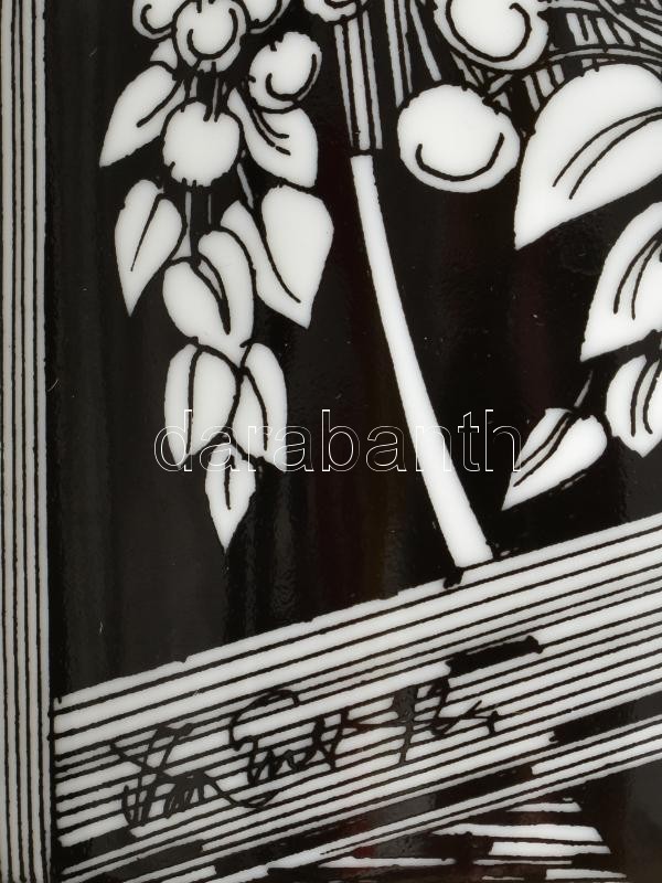 Hollóházi Szász Endre által tervezett mintával díszített porcelán váza, matricás, jelzett, hibátlan, m: 30 cm