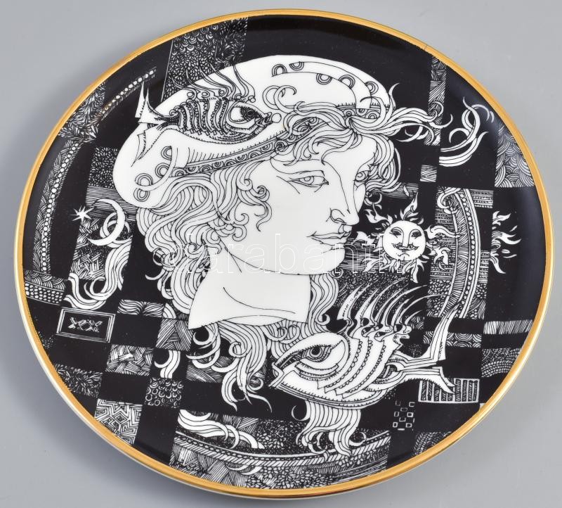 Hollóházi Szász Endre tervezte tányér, matricás, jelzett, minimális ko...