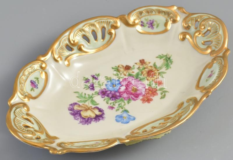 Horn E 1937. porcelán kínáló tál. Kézzel festett, áttört. 25x16 cm