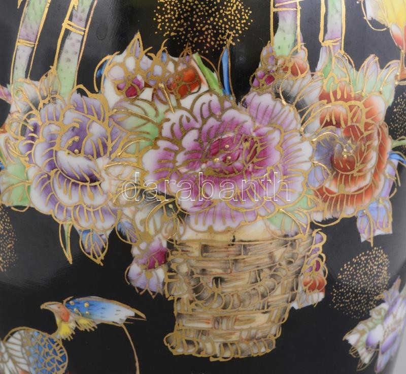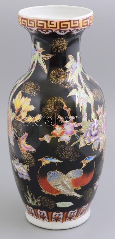 Kínai porcelán váza, kézzel festett, jelzett, kis kopásokkal, m: 36 c...
