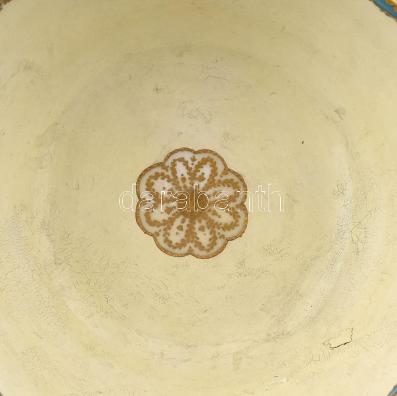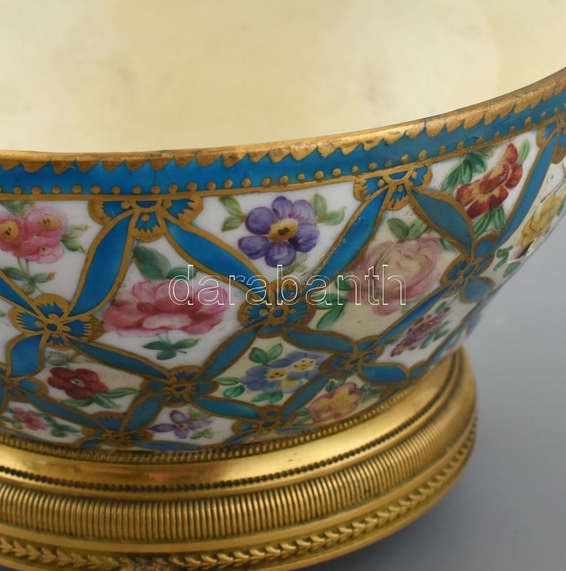 Sévres fajansz tálka réz lábakon. XIX. sz. Franciaország. Kézzel feste...