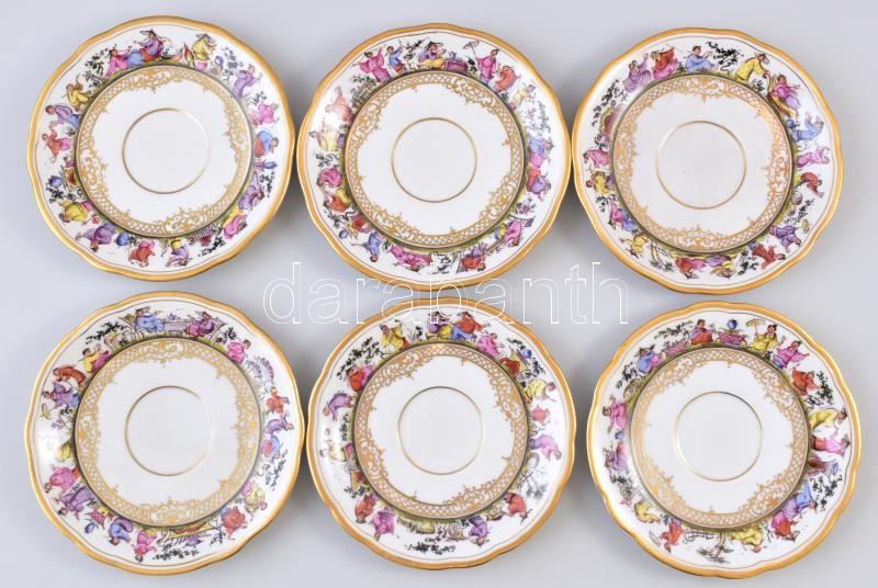 Teáskészlet porcelán. H. T. Dresdner handmalerei jelzéssel. XX: sz. N...