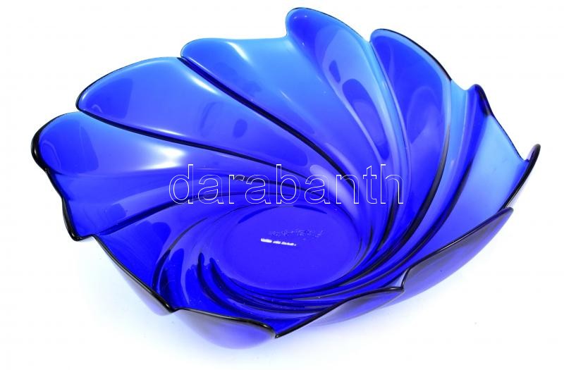 Kék üveg kínáló tál. Jelzés nélkül, hibátlan. d: 31 cm