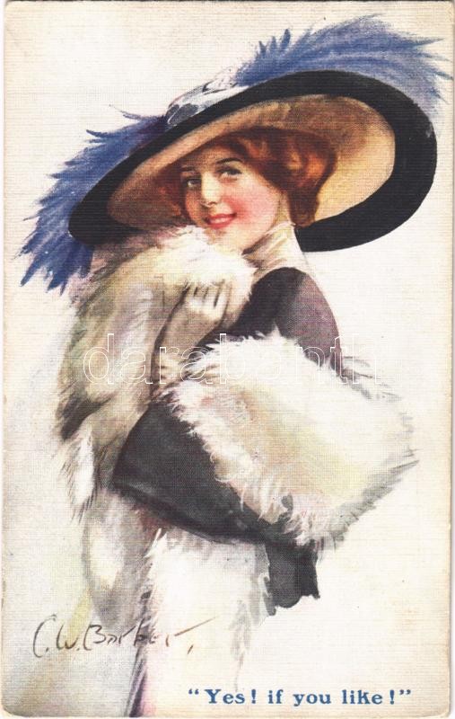 1913 "Yes! If you like!" Lady art postcard. B.K.W.I. Nr. 861/6. s: C.W. Barber (EK)