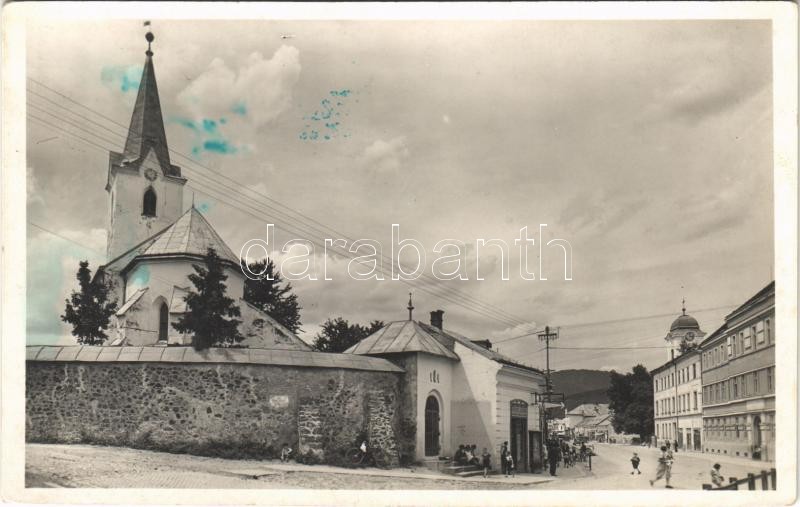 Huszt, Chust, Khust; Református templom, Fekete József üzlete. Bottka Béla kiadása / Calvinist church, shop (kis szakadás / small tear)